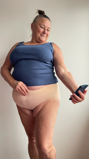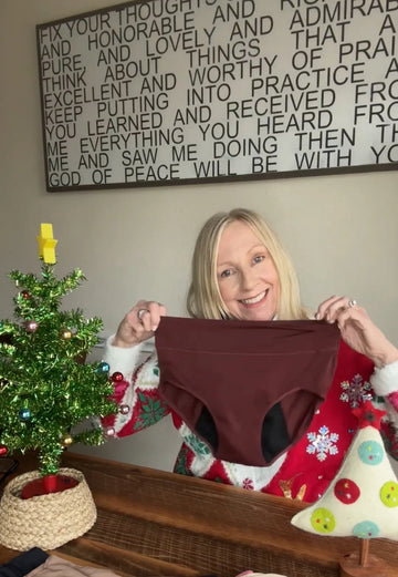 A roupa interior antifugas da Maria atua como uma proteção pessoal, absorvendo a humidade e prevenindo fugas antes que aconteçam.